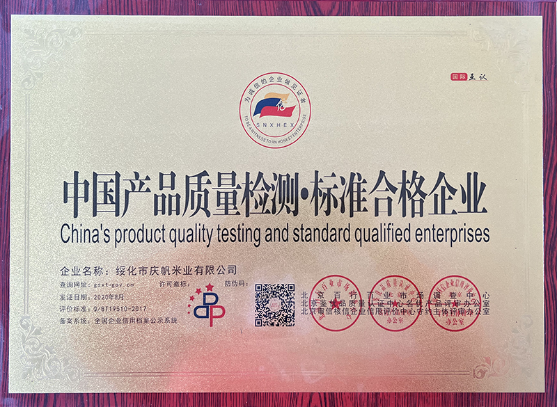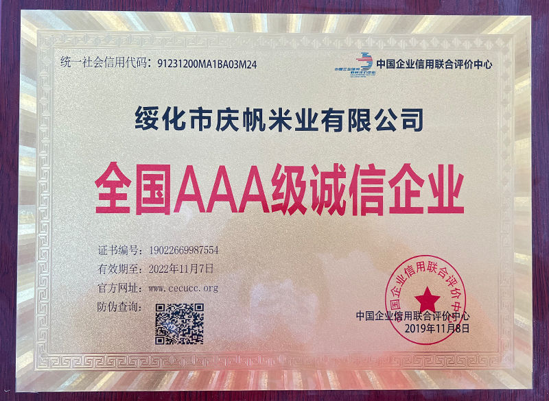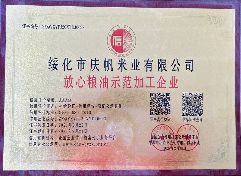 關(guān)于慶帆米業(yè) 客戶至上 品質(zhì)優(yōu)良 您現(xiàn)在的位置:網(wǎng)站首頁 > 關(guān)于我們 > 資質(zhì)榮譽(yù) 企業(yè)文化 CORPORATE CULTURE 資質(zhì)榮譽(yù) HONOR 領(lǐng)導(dǎo)致辭 LEADER’S SPEECH 公司簡介 COMPANY PROFILE 黑龍江省質(zhì)量品牌雙保障信用認(rèn)證企業(yè) 放心糧油示范加工企業(yè) 綠色品牌 中國綠色“健康米” 全國AAA級(jí)誠信企業(yè) 中國產(chǎn)品質(zhì)量檢測(cè)標(biāo)準(zhǔn)合格企業(yè) 共15條記錄 當(dāng)前為第2頁/共3頁上一頁123下一頁